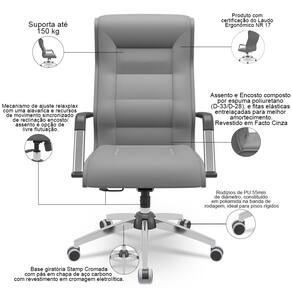 Projetada para quem busca o equilíbrio perfeito entre estilo e funcionalidade, a essa cadeira de escritório é a escolha ideal para líderes que valorizam a sofisticação e o conforto. Com um design imponente e elegante, ela se adapta a diversos ambientes, desde escritórios corporativos até home offices, isso porque cada detalhe foi desenvolvido para garantir a melhor experiência. A começar pela base cromada e pelo mecanismo Relax, os quais oferecem um visual moderno, além de um ajuste preciso da altura e inclinação do encosto.