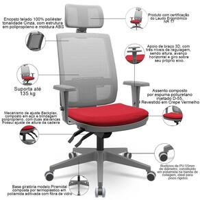 Color: CinzaVermelho | ColorFamily: Vermelho | ColorSimple: Vermelho | ColorSupplier: CinzaVermelho | Com apoio de braços: Sim | Com aro para pés: Não | Com rodas: Sim | Cor: CinzaVermelho | Formato de venda: Kit 2 unidades | Materiais do aro para pés: na | Material: Madeira, Espuma de Poliuretano, Polipropileno, Crepe | Material do estofamento: Espuma de Poliuretano Injetada | MaterialFamily: Polipropileno | Model: Fritz | Modelo: Fritz | Modelo detalhado: Fritz | OriginCountry: Brasil | OriginState: PR | ProductContents: 02 Cadeiras | ProductHeight: 97 cm | ProductInstructions: Produto para uso em ambiente interno, nao devendo ficar exposto ao sol, calor e umidade excessivos. | ProductLength: 70 cm | ProductWarranty: 90 dias após o recebimento do produto | ProductWeight: 26 kg | ProductWidth: 65 cm | Requer montagem: Sim | SizeDescription: Altura: 97 cm x Largura: 65 cm x Profundidade: 70 cm | SupplierSimpleName: Kit 02 Cadeiras De Escritório Giratória Presidente Fritz P03 Tela Cinza Crepe Vermelho - Lyam Decor | Tipo de cadeira de escritório: Presidente Giratória