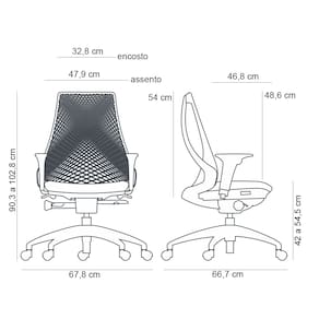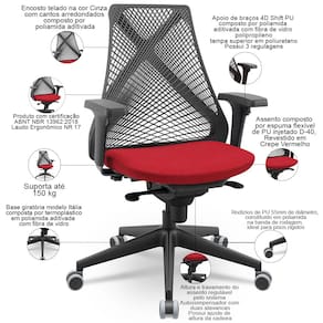 A começar pelo encosto telado com desenho X, que proporciona excelente ventilação e se adapta perfeitamente às curvas da sua coluna, oferecendo suporte lombar personalizado, ao passo que os braços com 3 tipos de regulagem com ajuste da altura, o giro e o avanço horizontal, tudo para que você encontre a posição ideal e evite tensões nos ombros e braços. Além disso, a essa cadeira giratória com rodízios permite fácil movimentação e rotação de 360°, otimizando o seu espaço de trabalho.