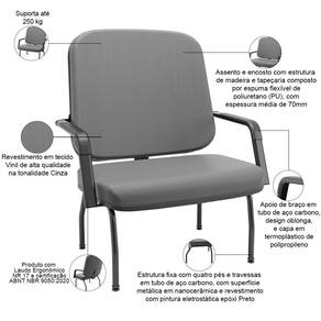 Modelo detalhado: Magno com Braço Base Preta | ColorSimple: Cinza | ColorSupplier: Cinza | ColorFamily: Cinza | Cor: Cinza | Formato de venda: Kit | Com aro para pés: Não | Modelo: Magno | Model: Magno | Com apoio de braços: Sim | MaterialFamily: Vinil | Requer montagem: Sim | Color: Cinza | Tipo de cadeira de escritório: Cadeira Recepção, Sala de Espera | Material: Tubo de Aço Carbono, Espuma Flexível Poliuretano, Vinil | Número de registrocertificação INMETRO: ABNT NBR 13962, NR 17 | OriginState: PR | ProductWarranty: 90 dias após o recebimento do produto | Materiais do aro para pés: na | Material do estofamento: Vinil | ProductWidth: 87 cm | SupplierSimpleName: Kit 02 Cadeiras de Escritório Recepção com Braço Fixa Preta Magno P03 Vinil Cinza - Lyam Decor | Com rodas: Não | ProductLength: 72 cm | OriginCountry: Brasil | ProductWeight: 34 kg | ProductHeight: 104 cm | ProductContents: 02 Cadeiras, manual de instruções | ProductInstructions: Produto para uso em ambiente interno, nao devendo ficar exposto ao sol, calor e umidade excessivos. | SizeDescription: Altura: 104 cm x Largura: 87 cm x Profundidade: 72 cm