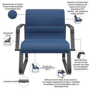 Formato de venda: Kit | Com apoio de braços: Sim | Material: Tubo de Aço Carbono, Espuma ível Poliuretano, Crepe | ColorFamily: Azul | ColorSimple: Azul | Modelo: Lev | ColorSupplier: Azul | Requer montagem: Sim | Material do estofamento: Crepe | ProductLength: 66 cm | Cor: Azul | Materiais do aro para pés: na | SupplierSimpleName: Kit 02 Cadeiras de Escritório Recepção Fixa Pés Preto Lev P03 Crepe Azul - Lyam Decor | ProductHeight: 82 cm | Modelo detalhado: Lev com Braços Base Preta | Com rodas: Não | MaterialFamily: Crepe | Com aro para pés: Não | OriginCountry: | Color: Azul | Tipo de cadeira de escritório: Cadeira Recepção, Sala de Espera | ProductWeight: 30 kg | Model: Lev | de registrocertificação INMETRO: ABNT NBR 13962, ABNT ABNT NM 300, NR 17 | ProductWarranty: 90 dias após o do produto | ProductWidth: 77 cm | SizeDescription: Altura: 82 cm x Largura: 77 cm x Profundidade: 66 cm | ProductContents: 02 Cadeiras, manual de instruções | OriginState: PR | ProductInstructions: Produto para uso em ambiente interno, nao devendo ficar exposto ao sol, calor e umidade excessivos.