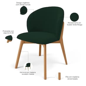 O Kit 02 Cadeiras de Jantar e Estar Living Estofada Mia, da Lyam Decor, é a combinação perfeita de design orgânico, conforto e modernidade, expressos em cada detalhe, desde as linhas curvas do assento e encosto até os pés de madeira maciça envernizada. Em outras palavras, essa cadeira estofada é ideal para complementar sua sala de jantar ou estar com elegância e estilo. Além disso, a tapeçaria feita com espuma D-26 oferece um conforto excepcional, permitindo que você desfrute de momentos prazerosos durante suas refeições ou conversas com amigos e familiares. Para completar, essa cadeira de jantar moderna é perfeita para quem busca uma sala de jantar contemporânea, já que seu design único traz uma sensação de beleza e sofisticação ao ambiente e, ainda, harmoniza facilmente com diversos estilos de mesa de jantar. Ah, mas além da sala de jantar, você também pode aproveitá-la como assento extra na sala de estar, recepção, escritório e até mesmo no quarto, ou seja, uma cadeira de madeira versátil como você sempre quis.