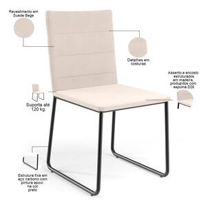 Color: Bege | ColorFamily: Bege | ColorSimple: Bege | ColorSupplier: Bege | Material: Estrutura em Madeira, Revestimento em Suede e espuma | MaterialFamily: Madeira, Suede e espuma | Model: Maya | OriginCountry: Nacional | OriginState: PR | ProductContents: 02 Cadeiras | ProductHeight: 174 cm | ProductInstructions: Produto para uso em ambiente interno, nao devendo ficar exposto ao sol, calor e umidade excessivos. | ProductLength: 53 cm | ProductWarranty: 90 dias após o recebimento do produto | ProductWeight: 13,2 Kg | ProductWidth: 46 cm | SizeDescription: Altura: 174 cm x Largura: 46 cm x Profundidade: 53 cm | SupplierSimpleName: Kit 02 Cadeiras Decorativa Estofada Para Sala De Jantar Preto Maya L02 Suede Bege - Lyam Decor