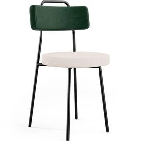 Revestimento do encosto em Facto na cor Verde Musgo e do assento em Linho na cor Cru, com acabamento semi brilho.