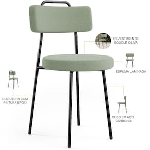 Amplamente moderna, dispondo de muito realce e design singular, o Kit 02 Cadeiras Decorativas Estofadas Para Sala De Jantar Barcelona L02 Bouclê Oliva - Lyam Decor vem com a personalidade e elegância que sua decoração merece! Estruturada em aço carbono, contrasta lindamente com o encosto e assento estofados, cabe mencionar ainda seu revestimento em Couríssimo, é confeccionada por materiais de excelente qualidade, extremamente resistentes e aconchegantes.