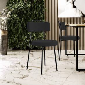 Amplamente moderna, dispondo de muito realce e design singular, o Kit 02 Cadeiras Decorativas Estofadas Para Sala De Jantar Barcelona L02 Bouclê Preto - Lyam Decor vem com a personalidade e elegância que sua decoração merece! Estruturada em aço carbono, contrasta lindamente com o encosto e assento estofados, cabe mencionar ainda seu revestimento em Couríssimo, é confeccionada por materiais de excelente qualidade, extremamente resistentes e aconchegantes.