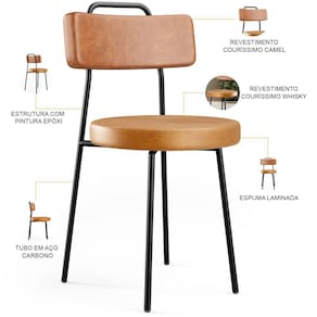 Amplamente moderna, dispondo de muito realce e design singular, o Kit 02 Cadeiras Decorativas Estofada Para Sala Jantar Barcelona L02 Couríssimo Camel Whisky - Lyam vem com a personalidade e elegância que sua decoração merece! Estruturada em aço carbono, contrasta lindamente com o encosto e assento estofados, cabe mencionar ainda seu revestimento em Couríssimo e linho, é confeccionada por materiais de excelente qualidade, extremamente resistentes e aconchegantes.
