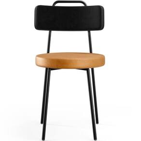 Revestimento do encosto em Couríssimo na cor Preto e do assento em Couríssimo na cor Whisky, com acabamento semi brilho.
