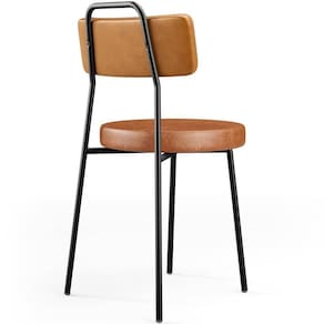 Revestimento do encosto em Couríssimo na cor Whisky e do assento em Couríssimo na cor Camel, com acabamento semi brilho.