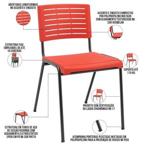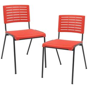 Color: Vermelho | ColorFamily: Vermelho | ColorSimple: Vermelho | ColorSupplier: Vermelho | Com apoio de braços: Não | Com aro para pés: Não | Com rodas: Não | Cor: Vermelho | Formato de venda: Kit 2 unidades | Materiais do aro para pés: na | Material: Termoplástico, Tubos de Aço | Material do estofamento: na | MaterialFamily: Polipropileno | Model: Kimi | Modelo: Kimi | Modelo detalhado: Kimi | OriginCountry: Brasil | OriginState: PR | ProductContents: 02 Cadeiras | ProductHeight: 79 cm | ProductInstructions: Produto para uso em ambiente interno, nao devendo ficar exposto ao sol, calor e umidade excessivos. | ProductLength: 56 cm | ProductWarranty: 90 dias após o recebimento do produto | ProductWeight: 8 kg | ProductWidth: 44 cm | Requer montagem: Não | SizeDescription: Altura: 79 cm x Largura: 44 cm x Profundidade: 56 cm | SupplierSimpleName: Kit 02 Cadeiras Empilhável Fixa Escritório Multiuso Base Preta Kimi P03 Vermelho - Lyam Decor | Tipo de cadeira de escritório: Cadeira Empilhável