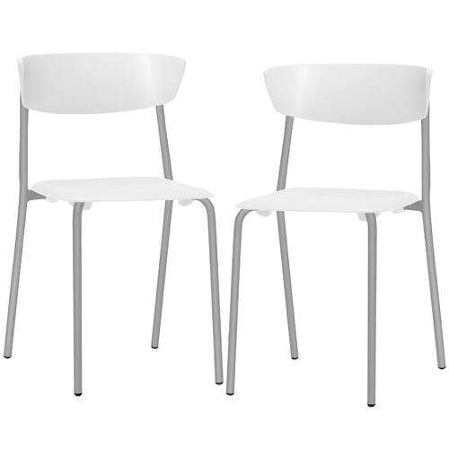 Características: Material do encosto e assento injetado em Polipropileno (PP) 100% reciclável, na tonalidade Branco. Pés em tubo de aço carbono de secção circular, com diâmetro 22mm e acabamento com pintura epóxi, na tonalidade Cinza. Encosto com design curvo para maior conforto e apoio. Acompanha ponteiras injetadas em polipropileno para a prevenção de riscos no piso. Peso máximo suportado 120 kg. Estrutura fixa empilhável. Produto 100% Nacional.