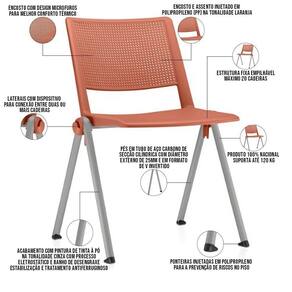 Material do encosto e assento injetado em Polipropileno (PP) na tonalidade Laranja.