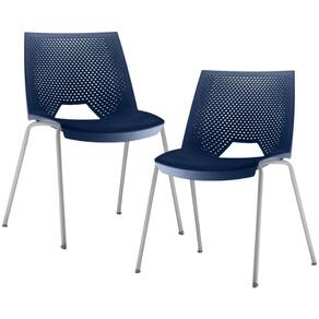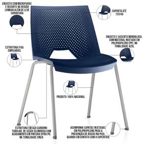 Encosto e assento monobloco, com material injetado em Polipropileno (PP), na tonalidade Azul.
