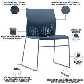 Material do encosto e assento injetado em Polipropileno (PP), na tonalidade Azul.