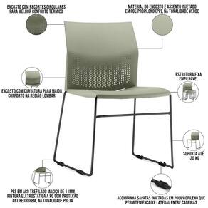 Material do encosto e assento injetado em Polipropileno (PP), na tonalidade Verde.