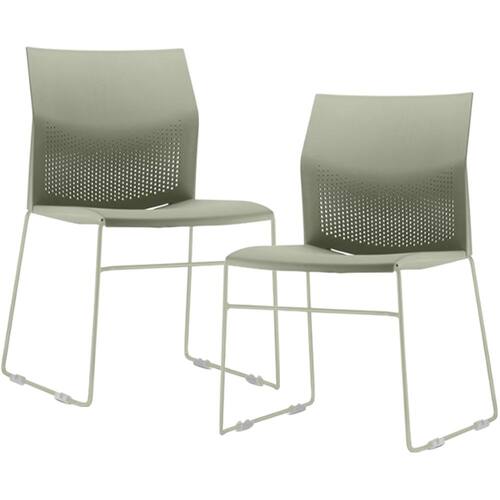 Material do encosto e assento injetado em Polipropileno (PP), na tonalidade Verde.
