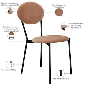 Model: Azuri | Firmeza: Firme | ProductWeight: 11 kg | É cadeira de balanço: Não | Material do estofamento: MDP, Espuma D22D28 e Veludo | Largura do assento: NA | Largura da cadeira: 43 cm | Peso máximo suportado: 120 kg | Requer montagem: Não | MaterialFamily: Aço, MDP e Veludo | OriginState: PR | ProductContents: 02 Cadeiras | ProductLength: 53 cm | ProductInstructions: Produto para uso em ambiente interno, nao devendo ficar exposto ao sol, calor e umidade excessivos. | Desenho do tecido: Liso | Cor da estrutura da cadeira: Preto | Cor do assento: Bege | Altura da cadeira: 86 cm | Profundidade da cadeira: 53 cm | Profundidade do assento: 42 cm | ColorSimple: Bege | Espessura do assento: na | Altura do assento a partir do solo: 49 cm | Tempo de montagem: na | É dobrável: Não | Cor: Bege | Color: Bege | É empilhável: Não | ColorFamily: Bege | ColorSupplier: Bege | Cor do estofamento: Bege | Fabricante: Lyam Decor | Material: Estrutura em Aço e MDP, Revestimento em Veludo | OriginCountry: Brasil | SizeDescription: Altura: 172 cm x Largura: 43 cm x Profundidade: 53 cm | ProductWidth: 43 cm | SupplierSimpleName: Kit 02 Cadeiras Estofada Para Sala de Jantar Azuri Preto C01 Veludo Bege - Lyam Decor | ProductWarranty: 90 dias após o recebimento do produto | ProductHeight: 172 cm