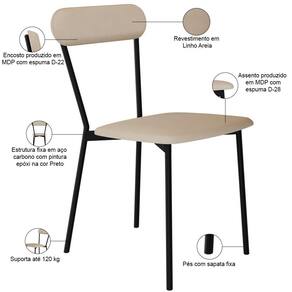 Peso máximo suportado: 120 kg | É dobrável: Não | É empilhável: Não | Requer montagem: Não | Tempo de montagem: na | Cor: Areia | Color: Areia | ColorFamily: Areia | ColorSimple: Areia | ColorSupplier: Areia | Cor do estofamento: Areia | Fabricante: Lyam Decor | Material: Estrutura em Aço e MDP, Revestimento em Linho e espuma | MaterialFamily: Aço, MDP, Linho e espuma | Model: Liora | OriginCountry: | OriginState: PR | ProductContents: 02 Cadeiras | SizeDescription: Altura: 162 cm x Largura: 43 cm x Profundidade: 53 cm | SupplierSimpleName: Kit 02 Cadeiras Estofada Para Sala de Jantar Liora Preto C01 Linho Areia - Lyam Decor | ProductLength: 53 cm | ProductWidth: 43 cm | ProductWarranty: 90 dias após o do produto | ProductHeight: 162 cm | ProductInstructions: Produto para uso em ambiente interno, nao devendo ficar exposto ao sol, calor e umidade excessivos. | ProductWeight: 5,5 kg | Desenho do tecido: Liso | Cor da estrutura da cadeira: Preto | Cor do assento: Areia | É cadeira de balanço: Não | Material do estofamento: Espuma D-22 e D-28 | Altura da cadeira: 162 cm | Profundidade da cadeira: 53 cm | Profundidade do assento: 53 cm | Largura do assento: 43 cm | Firmeza: Firme | Largura da cadeira: 43 cm | Espessura do assento: na | Altura do assento a partir do solo: 49 cm