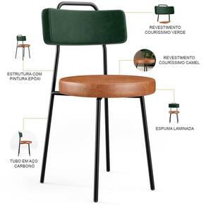 Amplamente moderna, dispondo de muito realce e design singular, o Kit 02 Cadeiras Decorativas Estofada Para Sala Jantar Barcelona L02 Facto Verde Musgo Couríssimo Camel - Lyam vem com a personalidade e elegância que sua decoração merece! Estruturada em aço carbono, contrasta lindamente com o encosto e assento estofados, cabe mencionar ainda seu revestimento em Couríssimo e linho, é confeccionada por materiais de excelente qualidade, extremamente resistentes e aconchegantes.