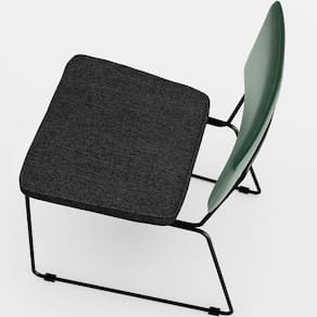 Revestimento do encosto em Facto Verde Musgo de alta qualidade, com acabamento semi brilho.