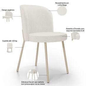 Altura da cadeira: 80 cm | ColorSimple: Bege | Cor do estofamento: Bege | Material do estofamento: Madeira, Espuma, Linho | Profundidade do assento: 42 cm | ProductHeight: 61 | OriginCountry: | ProductWidth: 62 | Desenho do tecido: Liso | ProductWarranty: 90 dias após o do produto | É empilhável: Não | Peso máximo suportado: 120 kg | Color: Bege | Cor: Bege | Material: Madeira, Espuma, Bouclê | ColorSupplier: Bege | ProductLength: 101 | MaterialFamily: Madeira, Espuma, Bouclê | Profundidade da cadeira: 53 cm | Cor da estrutura da cadeira: Arena | Largura do assento: 42 cm | ColorFamily: Bege | Fabricante: Lyam Decor | É cadeira de balanço: Não | SizeDescription: 61 x 62 x 101 cm | Model: Gavi | ProductWeight: 10 kg | Cor do assento: Bege | Requer montagem: Não | Tempo de montagem: na | Espessura do assento: na | Altura do assento a partir do solo: 46 cm | Largura da cadeira: 44 cm | OriginState: PR | É dobrável: Não | ProductInstructions: Produto para uso residencial em ambiente interno, não devendo ficar exposto diretamente ao sol, calo | SupplierSimpleName: Kit 02 Cadeiras Para Sala de Jantar Cozinha Estofada Gavi Arena L02 Linho Bege - Lyam Decor | ProductContents: 02 Cadeiras | Firmeza: Sim