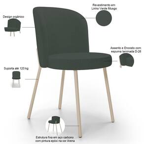 ProductWeight: 10 kg | SizeDescription: 61 x 62 x 101 cm | OriginCountry: | Model: Gavi | Color: Verde | ColorSupplier: Verde | Cor do assento: Verde | Desenho do tecido: Liso | ProductContents: 02 Cadeiras | Firmeza: Sim | É empilhável: Não | Tempo de montagem: na | Altura do assento a partir do solo: 46 cm | OriginState: PR | ColorFamily: Verde | ProductLength: 101 | ProductWarranty: 90 dias após o do produto | Cor: Verde | MaterialFamily: Madeira, Espuma, Bouclê | Material do estofamento: Madeira, Espuma, Linho | Profundidade do assento: 42 cm | Profundidade da cadeira: 53 cm | Espessura do assento: na | É dobrável: Não | Peso máximo suportado: 120 kg | ProductWidth: 62 | ProductHeight: 61 | Material: Madeira, Espuma, Bouclê | Cor do estofamento: Verde | ColorSimple: Verde | SupplierSimpleName: Kit 02 Cadeiras para Sala de Jantar Cozinha Estofada Gavi Arena L02 Linho Verde Musgo - Lyam Decor | Altura da cadeira: 80 cm | ProductInstructions: Produto para uso residencial em ambiente interno, não devendo ficar exposto diretamente ao sol, calo | Largura do assento: 42 cm | Fabricante: Lyam Decor | É cadeira de balanço: Não | Cor da estrutura da cadeira: Arena | Requer montagem: Não | Largura da cadeira: 44 cm