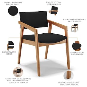O Kit 02 Cadeiras Para Sala de Jantar Estar Living Giorgia B04 Bouclê Preto, da Lyam Decor, é perfeito para adicionar um toque moderno à sala de jantar. Com sua estrutura em madeira maciça envernizada, ela traz durabilidade e estilo para o ambiente. O assento e o encosto estofados e revestidos com tecidos alto padrão proporcionam conforto durante as refeições, além de serem fáceis de limpar.
