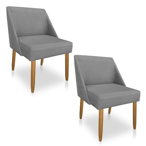 Kit 02 Cadeiras Poltona Juliana Suede Grafite Pés Palito Castanho - Pallazio