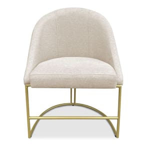 A base metálica em dourado confere à cadeira um aspecto industrial moderno, proporcionando um contraste encantador com o tecido em linho. Essa mistura de materiais agrega um ar contemporâneo e luxuoso ao ambiente, além de assegurar estabilidade e durabilidade à peça. O acabamento cuidadoso realça ainda mais a beleza e a qualidade do produto.