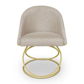 A base metálica em dourado confere à cadeira um aspecto industrial moderno, proporcionando um contraste encantador com o tecido em linho. Essa mistura de materiais agrega um ar contemporâneo e luxuoso ao ambiente, além de assegurar estabilidade e durabilidade à peça. O acabamento cuidadoso realça ainda mais a beleza e a qualidade do produto.
