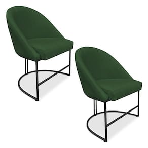 Kit 02 Cadeiras Poltrona De Jantar Bela Suede Verde Base Metálica Industrial Preto - Pallazio