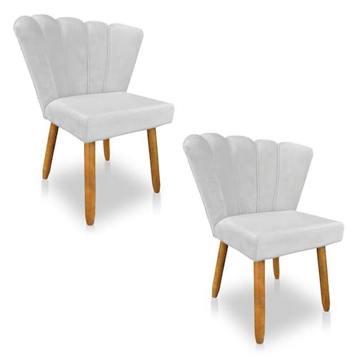 Kit 02 Cadeiras Poltrona Flor Veludo Cinza Pés Palito Castanho - Pallazio