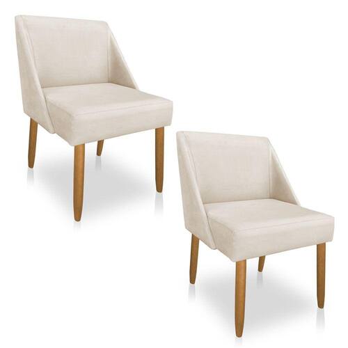 Kit 02 Cadeiras Poltrona Juliana Suede Pés Palito Castanho - Pallazio - Bege