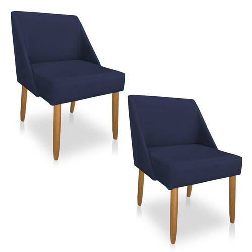 Kit 02 Cadeiras Poltrona Juliana Suede Pés Palito Castanho - Pallazio - Azul Marinho