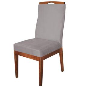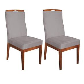 Conjunto 02 Cadeiras Para Sala De Jantar Ricco Estofada Madeira Carvalho Veludo Cinza Claro - Ahazzo Móveis Cor Cinza