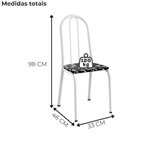 Cor: Multicolorido | Tonalidade: Multicolorido | Altura: 98 cm | Largura: 33 cm | Cõmodo indicado: Cozinhas | Material da estrutura: Aço | Produto: Cadeira Tubular | Peso do produto: 10 | Altura da cadeira: 98 cm | Largura do assento: 33 cm | Profundidade do assento: 46 cm | Requer montagem: Não | Quantidade de cadeiras por conjunto: 2 | Cor: Preto Flor