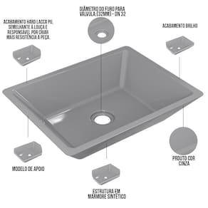 Kit 02 Cubas De Apoio Retangular Para Banheiro Lavabo C01 Rt45 Cinza - Lyam Decor Seu banheiro de cara nova! Hoje, incrivelmente um dos locais da casa onde mais pedem decoração é o banheiro ou lavabo. Aqui apresentamos a você uma cuba elegante e de um escoamento de água excelente para proporcionar mais comodidade e versatilidade para os usuários do lavatório. Além de enriquecer o visual do seu banheiro, determina a funcionalidade do mesmo. Vale ressaltar que as torneiras mais indicadas para este tipo de cuba são as de parede ou de bica alta, e exige também uma bancada com espaço superior suficiente para abrigar a mesma, junto com os outros adornos de banheiro que você desejar. Ideal para fazer parte do seu sonho! Dimensões da Cuba (L x A x P) 44,5 x 10 x 35 cm Características: Estrutura em Mármore Sintético com acabamento Hard Lacca PU, semelhante a louça e responsável por criar mais resistência a peça. Acabamento Brilho. Furação da Cuba: Válvula Universal 7/8 (32mm). Formato: Retangular. Modelo: Apoio. Importante: O produto é enviado montado, requerendo apenas instalação por parte do cliente. Recomendação de Limpeza: Recomenda-se lavagem do produto com bucha apenas do lado amarelo e detergente neutro. Observações importantes: - Produto para uso residencial em ambiente interno, não devendo ficar exposto diretamente ao sol, calor e umidade excessivos. - Pode haver alguma diferença de tonalidade entre a imagem e o produto real, por conta do tratamento de imagens e a calibração de cores do seu monitor. - As imagens são meramente ilustrativas, não acompanham objetos de decoração e eletrônicos. - Ao receber a mercadoria, o cliente deve verificar as condições da embalagem, caso haja alguma não assine o de . - Montagem, desmontagem e outras instalações serão de responsabilidade do cliente. Eventuais despesas são de responsabilidade do comprador. - Confira as dimensões do produto e certifique-se de que passará normalmente por supostos elevadores, portas, escadas e/ou corredores de sua residência. NA