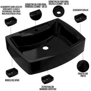 Seu banheiro de cara nova! Hoje, incrivelmente um dos locais da casa onde mais pedem decoração é o banheiro ou lavabo. Aqui apresentamos a você uma cuba elegante e de um escoamento de água excelente para proporcionar mais comodidade e versatilidade para os usuários do lavatório. Além de enriquecer o visual do seu banheiro, determina a funcionalidade do mesmo. Vale ressaltar que as torneiras mais indicadas para este tipo de cuba são as de parede ou de bica alta, e exige também uma bancada com espaço superior suficiente para abrigar a mesma, junto com os outros adornos de banheiro que você desejar. Ideal para fazer parte do seu sonho! Dimensões da Cuba (L x A x P) 50 x 10,5 x 37 cm Características: Estrutura em Mármore Sintético com acabamento Hard Lacca PU, semelhante a louça e responsável por criar mais resistência a peça. Acabamento Brilho. Furação da Cuba: Válvula Universal 7/8 (32mm). Formato: Retangular. Modelo: Apoio Importante: O produto é enviado montado, requerendo apenas instalação por parte do cliente. Recomendação de Limpeza: Recomenda-se lavagem do produto com bucha apenas do lado amarelo e detergente neutro. Observações importantes: - Produto para uso residencial em ambiente interno, não devendo ficar exposto diretamente ao sol, calor e umidade excessivos. - Pode haver alguma diferença de tonalidade entre a imagem e o produto real, por conta do tratamento de imagens e a calibração de cores do seu monitor. - As imagens são meramente ilustrativas, não acompanham objetos de decoração e eletrônicos. - Ao receber a mercadoria, o cliente deve verificar as condições da embalagem, caso haja alguma não assine o de . - Montagem, desmontagem e outras instalações serão de responsabilidade do cliente. Não nos responsabilizamos, no ato da , por subir escadas/elevadores ou pelo por guincho em apartamentos. Eventuais despesas são de responsabilidade do comprador. - Confira as dimensões do produto e certifique-se de que passará normalmente por supostos elevadores, portas, escadas e/ou corredores de sua residência. NA