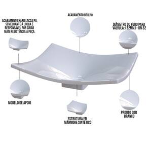 Estrutura em Mármore Sintético com acabamento Hard Lacca PU, semelhante a louça e responsável por criar mais resistência a peça.