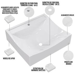 Estrutura em Mármore Sintético com acabamento Hard Lacca PU, semelhante a louça e responsável por criar mais resistência a peça.