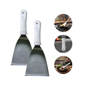 Kit 02 Espátulas Reta Inox 24cm/23,5cm Hamburguer Grelhados Espátula Reta Aço Inox Hamburguer Carnes e Grelhados ===================================== Perfeita para quem busca precisão, durabilidade e alto desempenho no preparo de alimentos. Com design robusto e funcional, essa espátula foi desenvolvida especialmente para e doméstico, sendo ideal para hambúrgueres, carnes, grelhados, chapa, planchas, massas, confeitaria e diversas outras aplicações na cozinha. Essa espátula une controle preciso com excelente ergonomia, tornando-se uma ferramenta indispensável em cozinhas de food trucks, hamburguerias, restaurantes, lanchonetes ou para entusiastas da gastronomia que prezam por qualidade e eficiência. ===================================== Contém: 02 Espátulas 01 de cada tamanho Especificações: - Material: Aço Inox e Plástico - Medida Espátula 01: 23,5cm x 12cm / Polegadas: 5 - Medida Espátula 02: 24cm x 10cm / Polegadas: 4 ===================================== Devido à diferença entre monitores e iluminação diferentes, pode haver variação na tonalidade apresentada no anúncio. Medidas muito aproximadas.