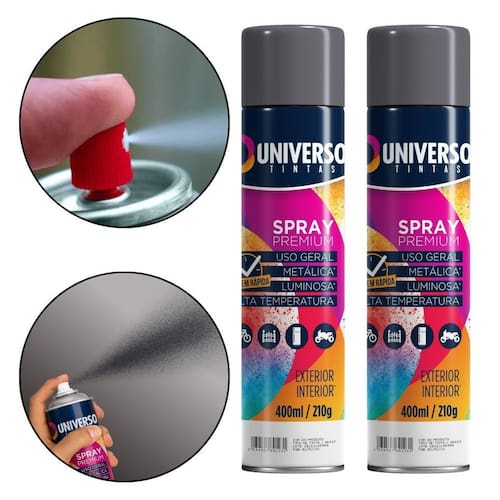Tinta Spray 400ml Cinza Grafite Uso Geral em Aço Ferro Couro Gesso Cerâmica A Tinta Spray 400ml Cinza Grafite Uso Geral é a solução prática para renovar superfícies de metal, gesso, couro e cerâmica. Ideal para dar vida nova a bicicletas, móveis, eletrodomésticos e objetos em geral, garantindo um acabamento moderno e duradouro. Com fórmula de alta qualidade, oferece excelente aderência e acabamento Brilhante, além de resistência superior contra desgastes do dia a dia. Sua cobertura uniforme realça os detalhes e proporciona um resultado em poucas camadas. Prática e fácil de aplicar, a tinta spray seca ao toque em apenas 15 minutos, permitindo agilidade nos trabalhos e economia de tempo. O rendimento de até 2 m por demão garante maior aproveitamento do produto e ótimo custo-benefício. Diferenciais: Acabamento Brilhante com ótima aderência Alta durabilidade e resistência em ambientes internos e externos Secagem rápida e aplicação prática com cobertura uniforme Especificações TÉCNICAS: Volume: 400ml Rendimento: até 2 m por demão Superfícies indicadas: metal, gesso, couro e cerâmica Secagem: toque em 15 minutos Acabamento: Brilhante Recomendação: uso de primer para melhor desempenho Itens INCLUSOS: 02 Tintas Spray 400ml Cinza Grafite Uso Geral Marca: Não Informado Ean: 7894141437909