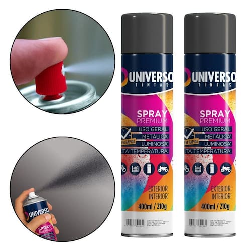 Tinta Spray 400ml Preto Fosco Uso Geral em Aço Ferro Couro Gesso Cerâmica A Tinta Spray 400ml Preto Fosco Uso Geral é a solução prática para renovar superfícies de metal, gesso, couro e cerâmica. Ideal para dar vida nova a bicicletas, móveis, eletrodomésticos e objetos em geral, garantindo um acabamento moderno e duradouro. Com fórmula de alta qualidade, oferece excelente aderência e acabamento Fosco, além de resistência superior contra desgastes do dia a dia. Sua cobertura uniforme realça os detalhes e proporciona um resultado em poucas camadas. Prática e fácil de aplicar, a tinta spray seca ao toque em apenas 15 minutos, permitindo agilidade nos trabalhos e economia de tempo. O rendimento de até 2 m por demão garante maior aproveitamento do produto e ótimo custo-benefício. Diferenciais: Acabamento Fosco com ótima aderência Alta durabilidade e resistência em ambientes internos e externos Secagem rápida e aplicação prática com cobertura uniforme Especificações TÉCNICAS: Volume: 400ml Rendimento: até 2 m por demão Superfícies indicadas: metal, gesso, couro e cerâmica Secagem: toque em 15 minutos Acabamento: Fosco Recomendação: uso de primer para melhor desempenho Itens INCLUSOS: 02 Tintas Spray 400ml Preto Fosco Uso Geral Marca: Não Informado Ean: 7894141438081