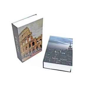 - por fora um livro e por dentro um cofre de metal, fechado a chave. - ideal para guardar objetos de valor, camuflado em sua estante. Marca: unyhome