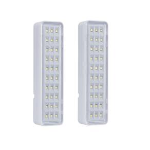 Especificações técnicas - Valor de 02 unidades - Aplicação Ambiente interno - Autonomia 6 horas fluxo mínimo / 3 horas fluxo máximo - Fluxo luminoso 55 lumens fluxo mínimo / 100 lumens fluxo máximo Bateria de íon-lítio 3,7 Vdc 1 Ah - Tempo de carga 24h 220 V / 48h 127 V - Tensão de alimentação 100 a 240 Vac 50/60 Hz - Peso 94 g - Ideal para ambiente de até 30m - Autonomia de até 6 horas - Bateria de lítio - Botão de teste - Chave seletora - Sistema antifurto - Kit completo para instalação - Dimensão Embalagem L A P 160 41 25,6 mm