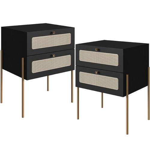 A estrutura com pés metálicos estilo industrial garante durabilidade e robustez, enquanto a delicada telinha sintética nas gavetas adiciona um charme extra, tornando-a não apenas funcional, mas também um verdadeiro destaque na decoração. Organize seus livros, óculos ou itens pessoais com facilidade e mantenha tudo ao seu alcance, criando um espaço que reflete sua personalidade e bom gosto com essa mesa lateral para quarto.