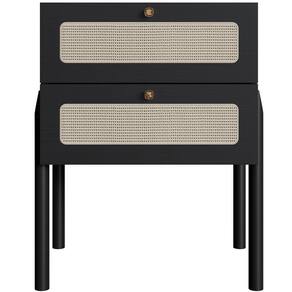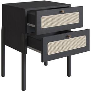 A estrutura com pés em madeira maciça garante durabilidade e robustez, enquanto a delicada telinha sintética nas gavetas adiciona um charme extra, tornando-a não apenas funcional, mas também um verdadeiro destaque na decoração. Organize seus livros, óculos ou itens pessoais com facilidade e mantenha tudo ao seu alcance, criando um espaço que reflete sua personalidade e bom gosto com essa mesa lateral para quarto.