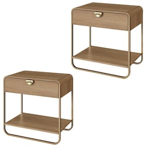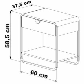 Kit 2 Mesas de Cabeceira 28061 combina design contemporâneo com praticidade para o dia a dia. Estrutura em MDP de 15 mm com cantoneiras em MDF e acabamento em pintura BP. Cada mesa possui gaveta com corrediças telescópicas, puxador em poliestireno, pés em metal, cantos arredondados com estilo orgânico, prateleira inferior e sapatas plásticas que protegem o piso contra riscos.