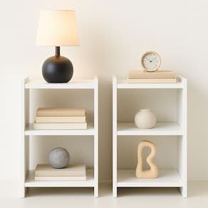 Mesa de Cabeceira Atenya 30x45cm com 02 Nichos Integrados: funcionalidade e estilo para complementar seu quarto ou outros ambientes da casa. Seu design clean e compacto é perfeito para quem busca organização e praticidade no dia a dia. Produzida em MDP, possui estrutura resistente e fácil de limpar. Conta com 02 nichos integrados, ideais para armazenar livros, objetos decorativos ou deixar o celular sempre à mão enquanto você descansa.