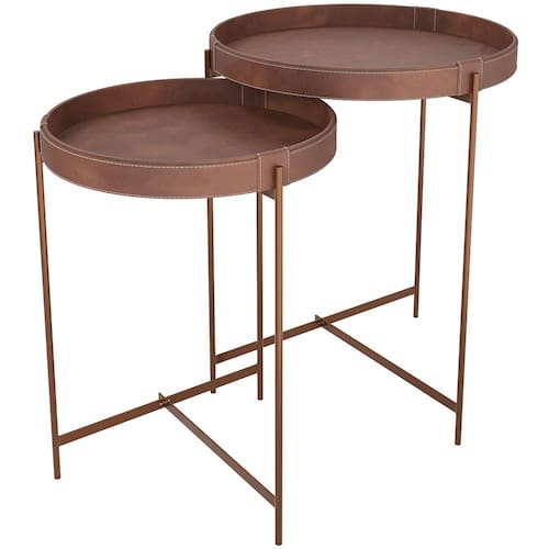 Kit 02 Mesas De Canto Lateral Decorativa Industrial Sala de Estar Sintético Whisky P06 Daisy - Lyam - Laranja